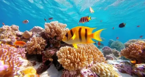 • Look for schools of colourful fish and, with luck, turtles or rays.